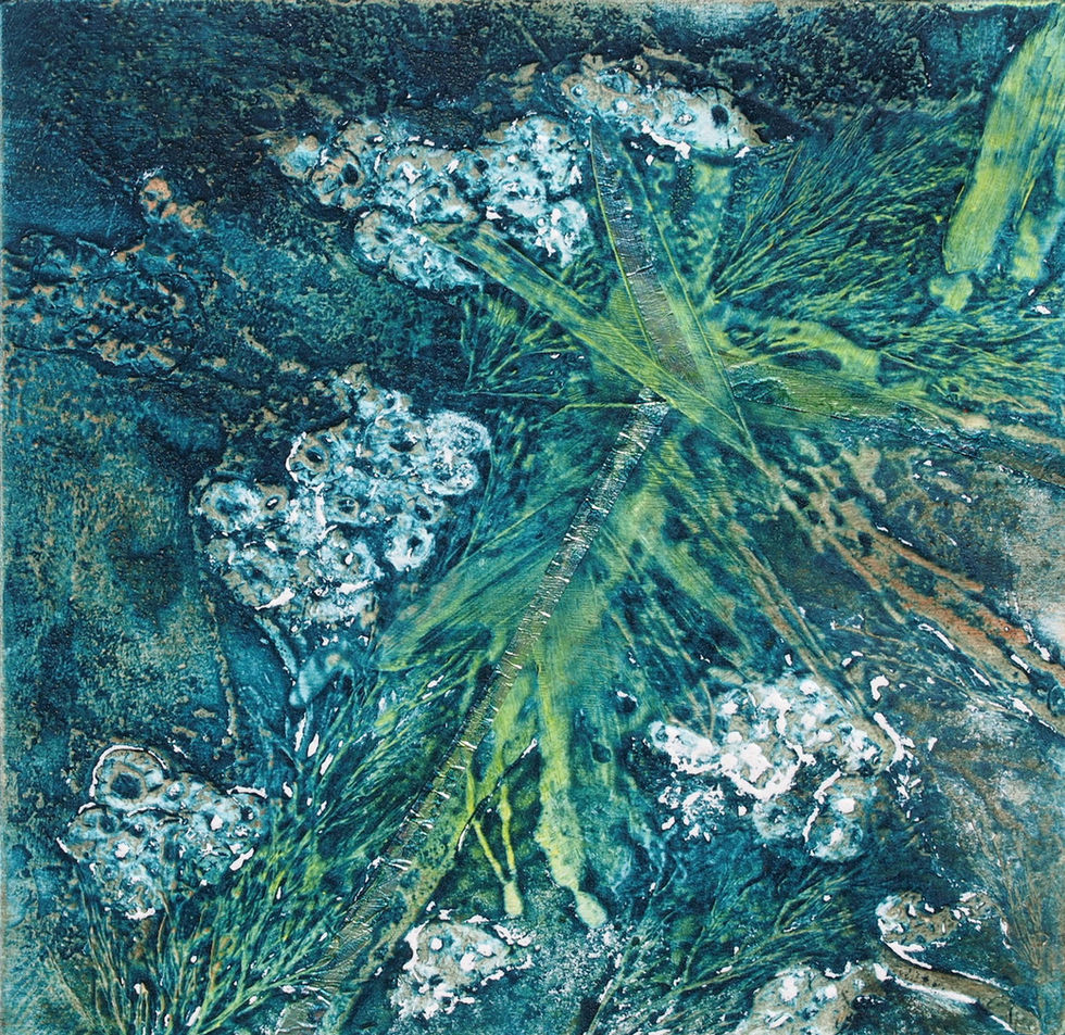 The word ‘collagraph’ is taken from the word ‘collage’. Prints are produced from collaged plates with a highly textured surface, resulting in an embossed print.